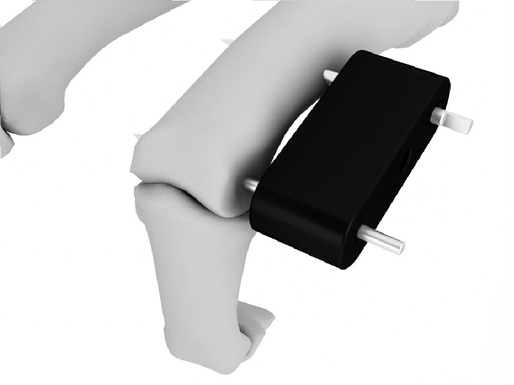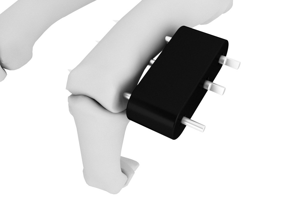 Fiksatör parmağın pozisyonuna göre açılandırılır ve schanz vidaları üzerinden yerleştirilir.